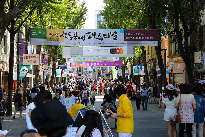 We were in a fun area called Myeong-dong. It is a huge tourist attraction full of fun street food, performers, shopping and restaurants. They had nice stores and restaurants, I believe we ate at TGIF!